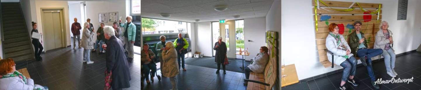 De bewoners van de Lange Akker in Nuenen miste al lang een bankje in de entrees van hun gebouw. Een plekje om te zitten als je wacht op de Taxbus of gewoon om even uit te rusten. Mede dankzij het Buurtfonds konden we deze wens nu realiseren. Samen gingen we aan de slag: wat is de beste plek, welke eigenschappen moet het bankje hebben en hoe gaat het er uit zien? We kwamen uit op een grote bank voor de meest gebruikte entree en een mini bankje voor de andere ingang die eigenlijk weinig wordt gebruikt. Voor het ontwerp kwam al snel het thema akker naar boven. Veel bewoners herinnerden zich nog hoe hier vroeger de akkers lagen. Zo kwamen er op de bankjes prints van koren, klaprozen en korenbloemen; door de bewoners zelf gedrukt!